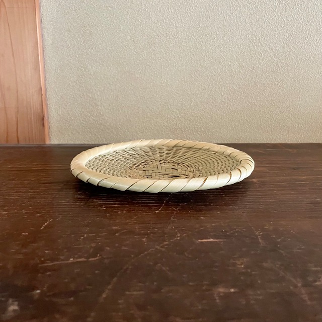 平ざるシリーズ、手のひらに収まる小ぶりで可愛らしいラインナップが加わりました。 大葉やトマトなど野菜はもちろん、お菓子を持って銘々皿としてお使いいただくのもおすすめです。 水への耐性を高めるために表皮を残した真竹の材を使用しております。 使用後は、しっかりと乾燥させることで長くお使いいただけます。 ※ 写真2枚目3枚目は平ざる(8寸・24cm)との比較です ーーーーーーーーーー 直径 約18cm 高さ 約2cm 材質 真竹 ーーーーーーーーーー ・ご注文後1〜2日程度で発送いたします。 ・写真は12月現在の現品を撮影したものです。作りたての青い状態のものをご購入希望の方は下記メールにてご連絡ください。受注生産にて承ります。 ・現品売り切れの場合、受注生産にてご注文承ります。サイズ違いやオーダーメイドのご相談も可能です。メールにてお問い合わせください。 ・青竹は水分量が多いため、長くしまっておいたり風通しの悪いところに置いておいたりすると、カビが発生する可能性があります。特に高温多湿の季節は注意が必要です。カビは籠の底面や内側、持ち手や縁の止めになどに使用するオオツヅラフジに発生しやすくなっています。カビが発生した場合は濡れ雑巾などで丁寧に拭き取り、風通しの良いところで陰干し乾燥させてください。 ・竹は自然素材のため、折れや割れが発生する場合もあります。その際はお気軽にご相談ください。 ・小売店様など当工房の商品の取り扱いをご希望の方は下記メールにてお問い合わせください。 ・転売を目的としたご購入は固くお断りいたします。転売行為が確認された場合、今後のご注文をお断りする場合がございます。何卒ご理解とご協力をお願い申し上げます。 【お問い合わせ】 竹桐舎 [email protected]