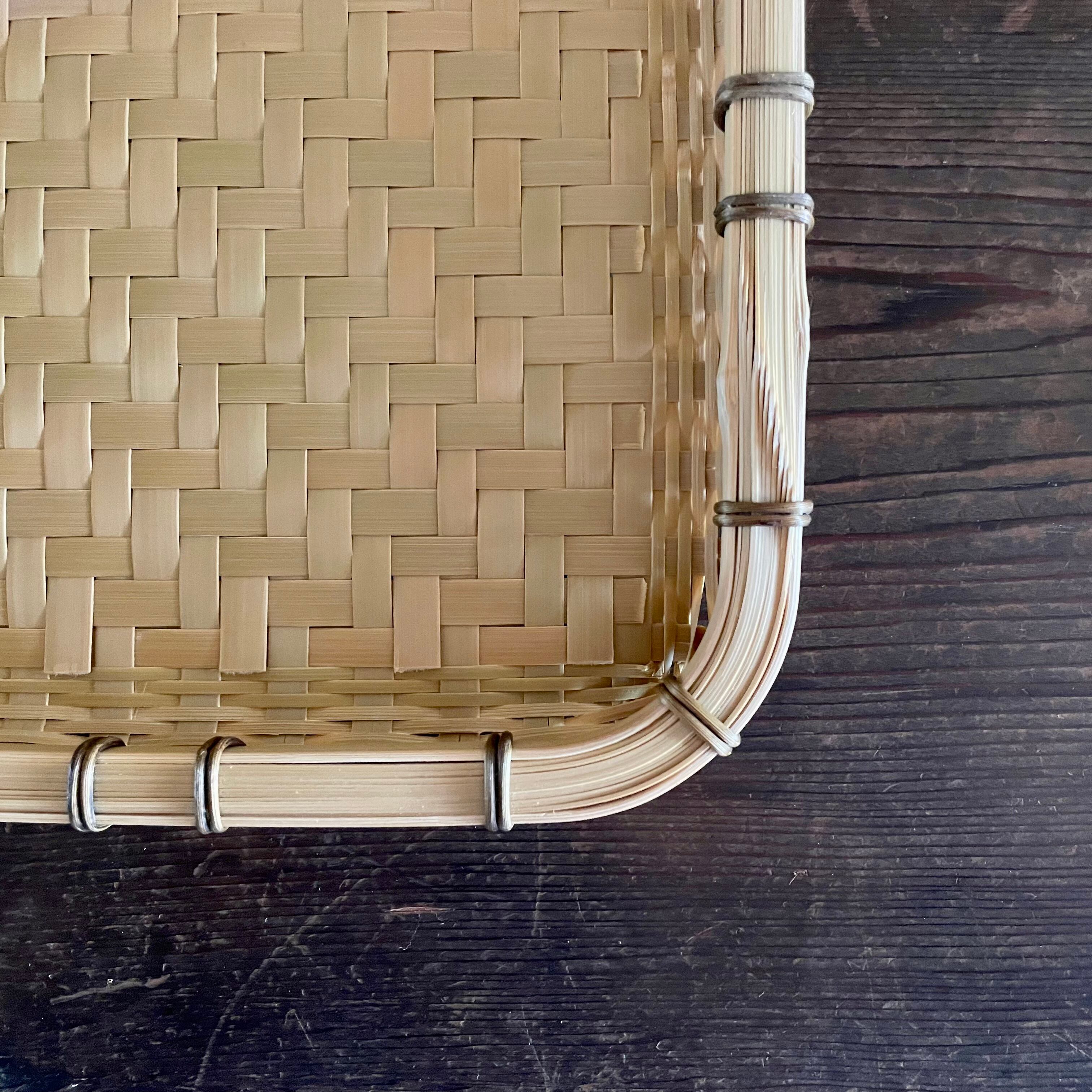 ・青竹は水分量が多いため、長くしまっておいたり風通しの悪いところに置いておいたりすると、カビが発生する可能性があります。特に高温多湿の季節は注意が必要です。カビは籠の底面や内側、持ち手や縁の止めになどに使用するオオツヅラフジに発生しやすくなっています。カビが発生した場合は濡れ雑巾などで丁寧に拭き取り、風通しの良いところで陰干し乾燥させてください。