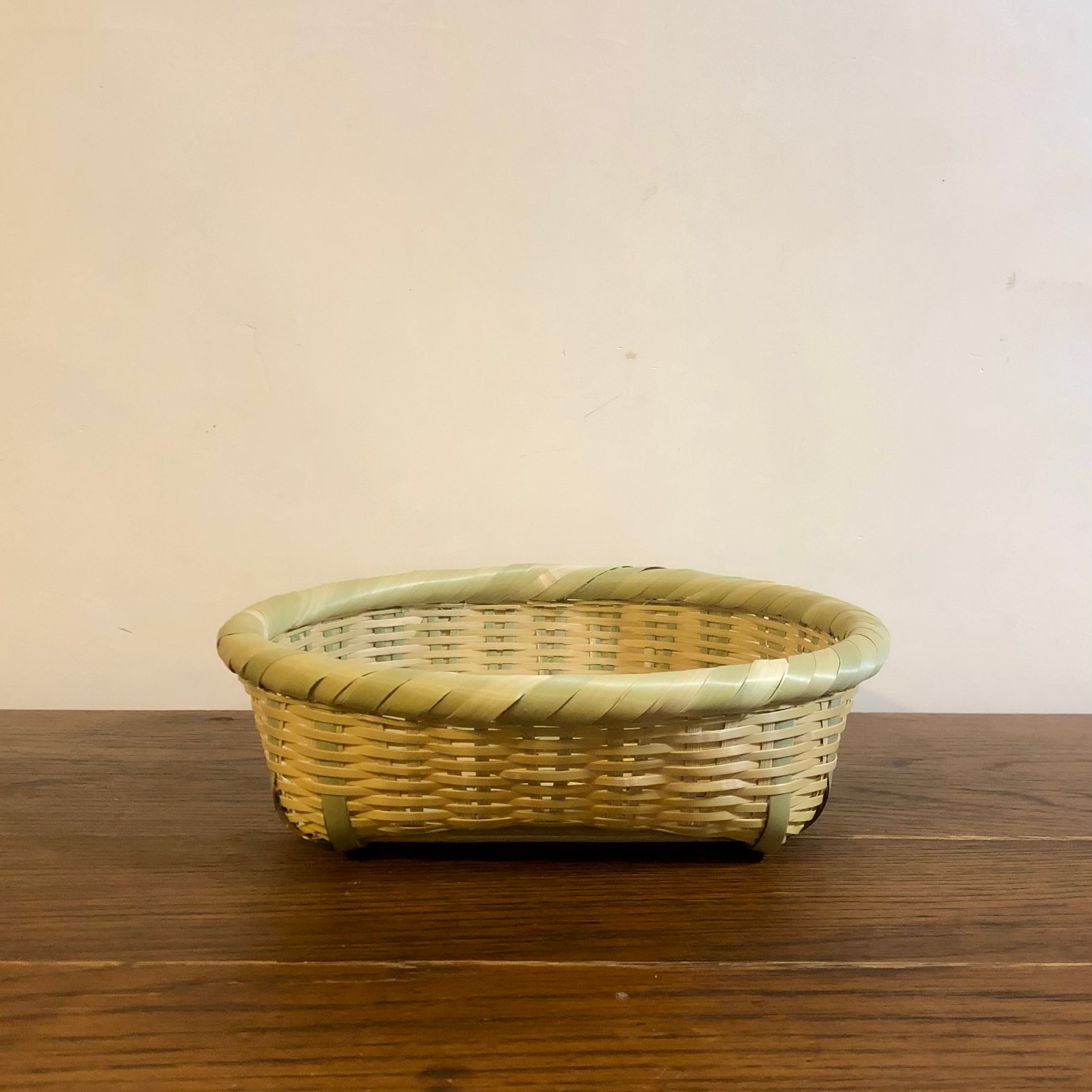 底四方口丸で浅めの丸型テーブルバスケットシリーズ、新作の巻き縁タイプです。
