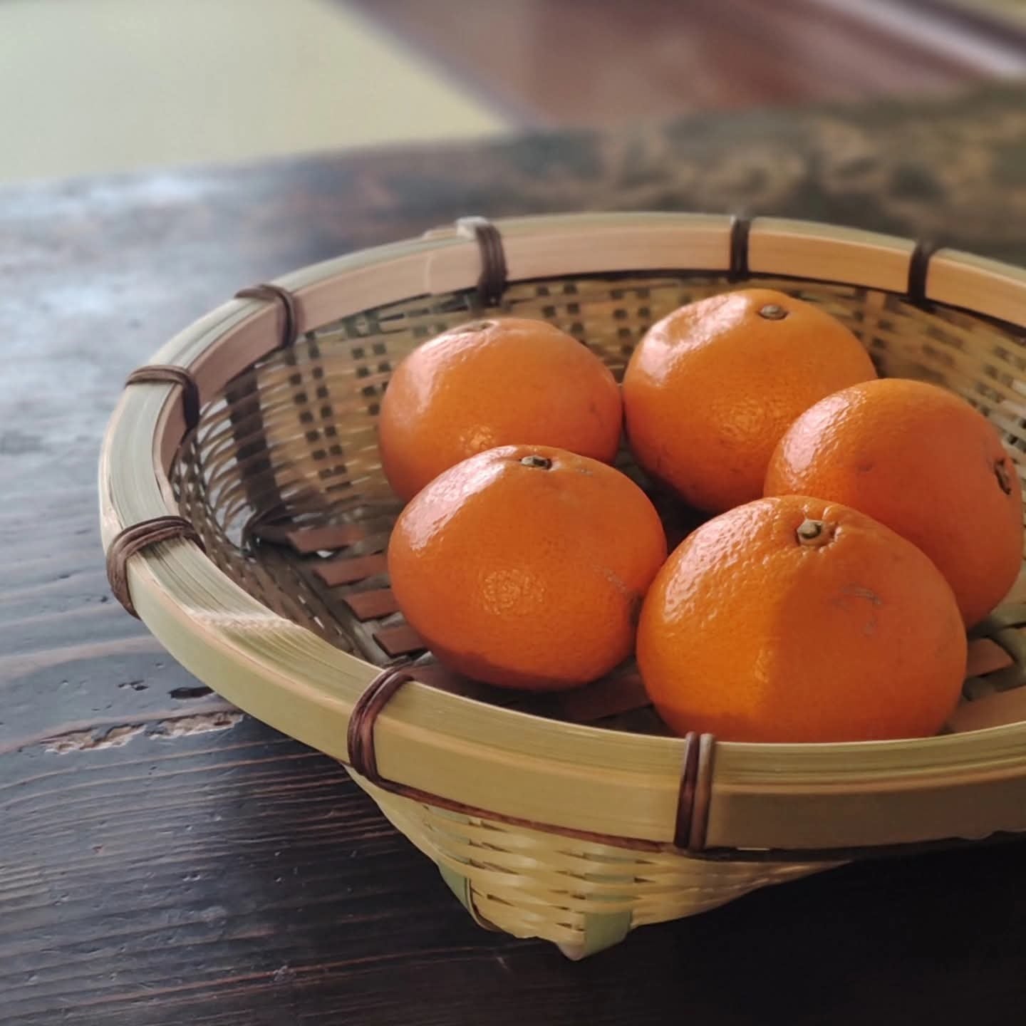 果物やお菓子を入れたり、湯呑やぐい飲みを入れたり、多用途に活躍する籠です。